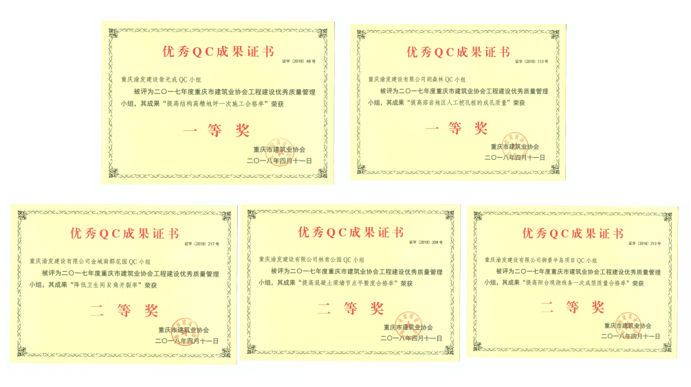 2018年4月12日,重庆市建筑业协会“2017年度建设优秀质量管理小组表彰暨成果发布会”隆重召开。重庆pg电子网址pg网站建设有限公司荣获“2017年度建设优秀质量管理小组”一等奖两名,二等奖三名。...